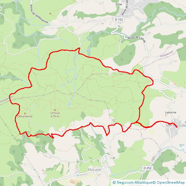 Qui sait ménager sa monture au départ, sur le sentier du lavoir de Mendionde et dans la rude ascension du quartier Etxebarne, pourra profiter pleinement de la suite de cette boucle autour du mont Ursuia, un plaisir de déambulation contemplative. Les chemins faciles des hauteurs de Mendionde, Hasparren et Macaye vous proposent des points de vue sans cesse renouvelés, tant sur les montagnes avoisinantes que sur le littoral atlantique. En chemin, on croisera brebis et pottoks, et s'accorder une pause ombragée sous les chênes centenaires et les châtaigniers. La dimension patrimoniale est également assouvie, puisque l'on découvrira fermes et bordes de montagne, on arpentera une section de l'antique route Napoléon et le circuit frôle les vestiges d'un camp protohistorique. Autant dire que vous ne verrez pas le temps passer dans les bras de l'Ursuia.