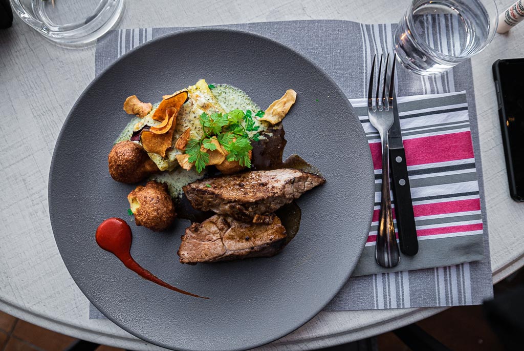 Après 10h de marche, nous arrivons enfin à Baïgorry. On passe au gîte pour se débarrasser des sacs à dos et prendre une bonne douche bien méritée avant de filer à l'Auberge Iparla . Quel réconfort ! Nous avons bien l'intention de nous récompenser pour cette journée sportive. Le cadre est encore une fois exceptionnel et le repas est un délice. Bonus ultime : on mange sur la terrasse avec vue sur les montagnes que nous avons gravies dans la journée. Le bonheur.