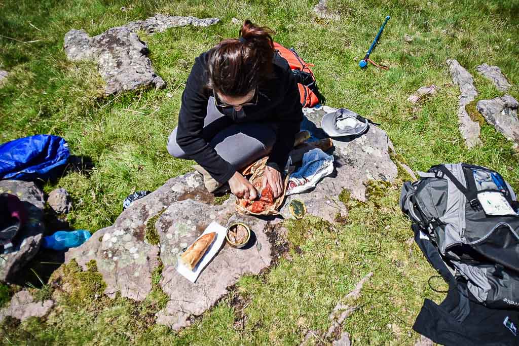 On fait souvent de courtes pauses pour retrouver notre souffle et pour passer quelques minutes à contempler la vue. Quelle beauté ! C'est grandiose, très vert, sauvage et tellement calme. Il n'y a pas meilleur endroit pour se ressourcer. C'est toujours une bonne occasion pour se réhydrater et manger un bout car la montagne ça creuse !