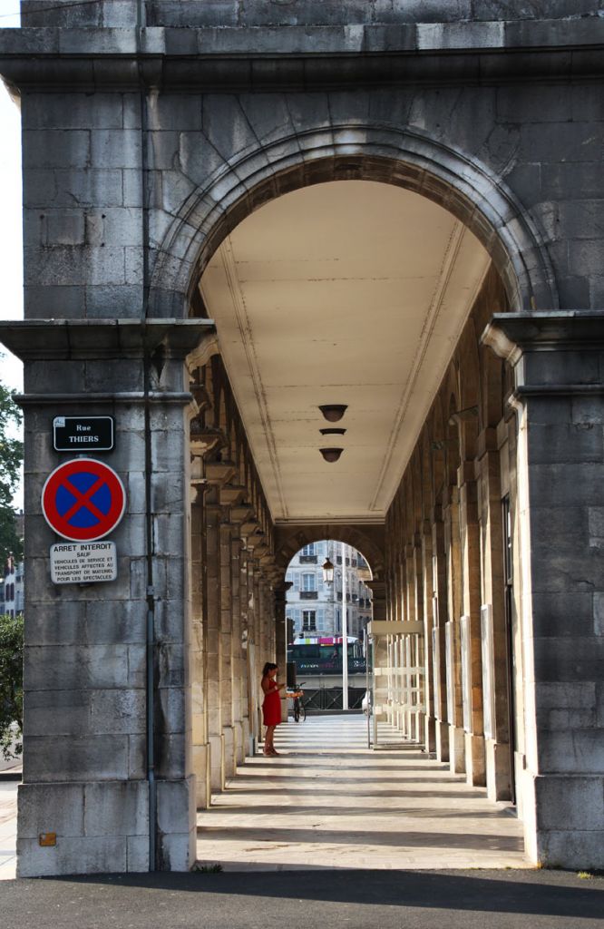 Je décide ensuite de repasser devant l’Hôtel de Ville, qui abrite également le théâtre afin de me rendre dans le Grand Bayonne, quartier originel de Bayonne mais aussi le quartier le plus commerçant. L’architecture de l’Hôtel de Ville est superbe, le bâtiment de plan carré, ouvert grâce à de grandes arcades, est surmonté de quelques statues de muses représentant chacune un art. Je ne peux que m’arrêter devant !