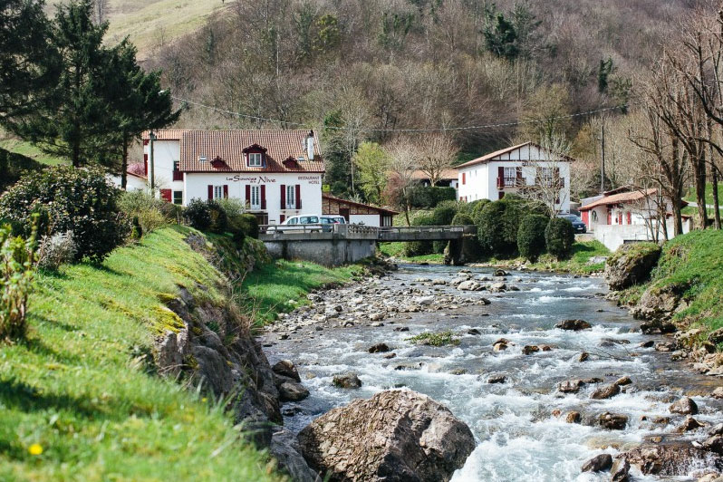 Au coeur de la vallée de la Nive qui prend sa source un peu plus haut, Esterençuby est un joli petit village ...