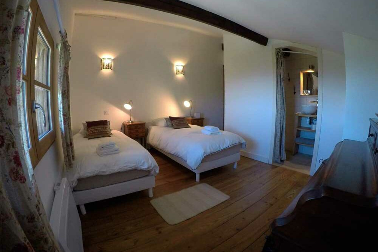Le deuxième logement offre 4 chambres double (2 de deux lits et 2 de lits double) avec la possibilité d'avoir des lits supplémentaires, 2 salles de bains complètes (sèche-cheveux), et 1 toilette.