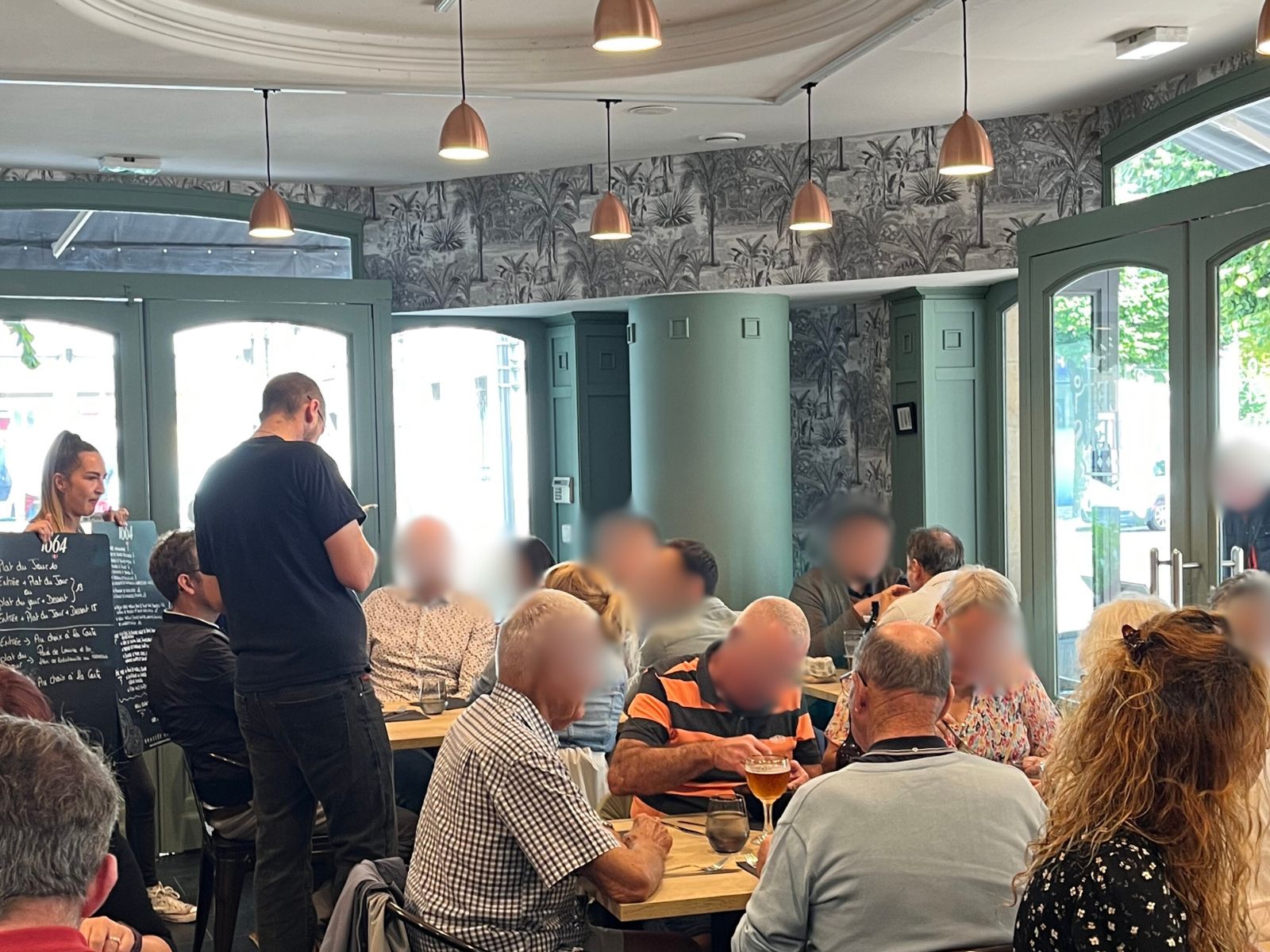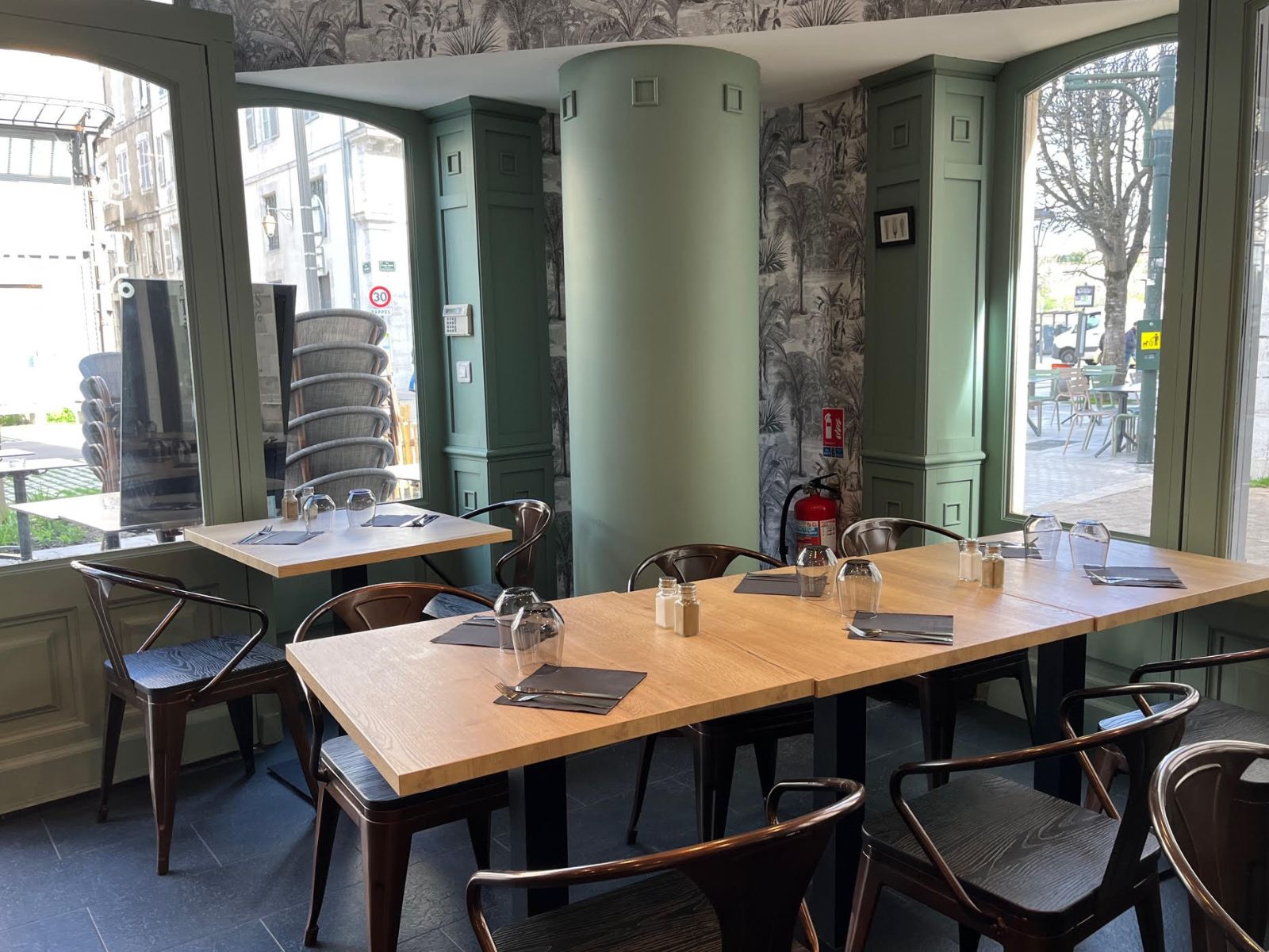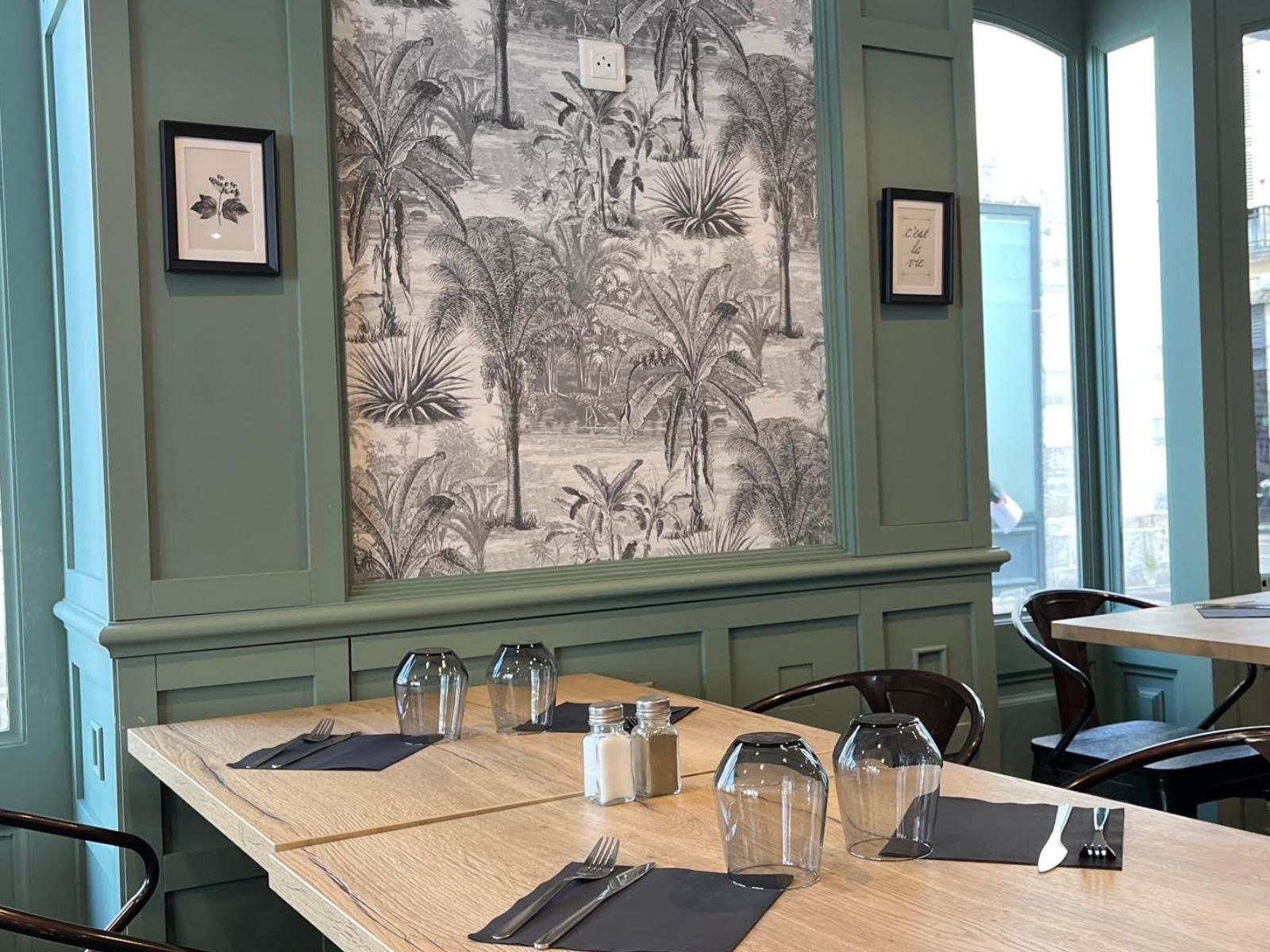Petit bar-restaurant de quartier traditionnel avec ses nappes vichy rouge et blanche à l'ancienne, proposant une ...
